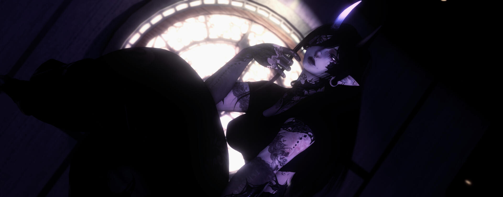 A victim of a botched resurrection with no memory of her mortal life, Indica has been searching for answers for centuries. Hailing from Ishgard and being gifted with a blessing from Halone, she has sought out any clues possible pertaining to what, or who, happened to her. Her search, in recent years, drew her to an abandoned house tucked away in a hidden corner of the Goblet.. a house that, with time, would become the Demons Reverie. Indica has settled for now, making use of the Reverie's intricate web of information to aid in her own search for answers.✧ HOOKS: