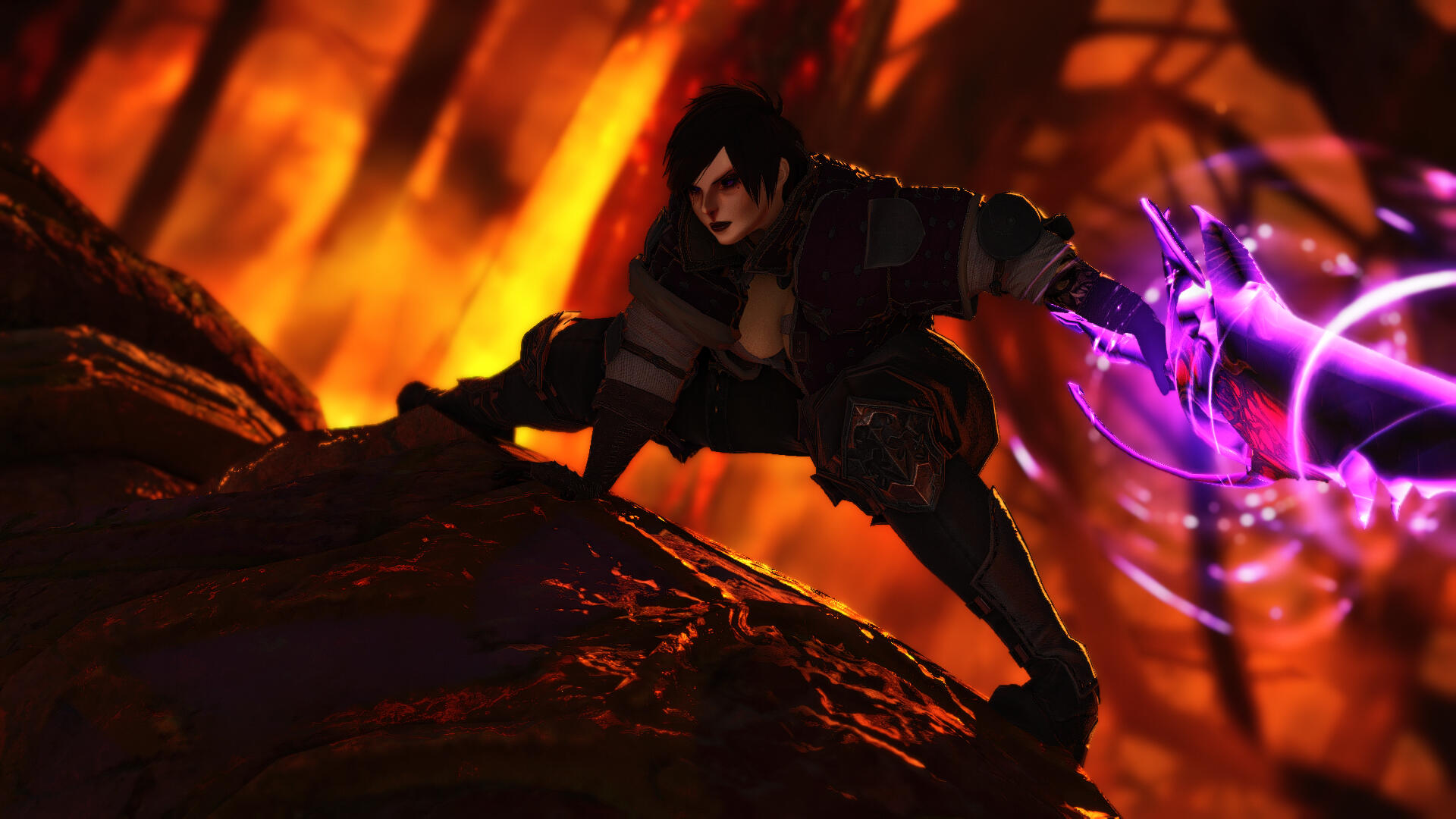 11th Day of the Third Astral Moon Rain collided with cobblestone under the lamplight of a dreary evening along the winding streets of Thanalan’s Goblet district. A soft amber glow radiated off the slick stone, illuminating the face of a tall au ra woman sporting inky black hair tied into a messy ponytail. The fur collar of her leather coat draped over her shoulders, soaked by the rain. She looked down the street, though her intrepid blind gaze remained unaffixed, her mind awash with a tempest of thought and a fleeting hope as if she were on borrowed time.