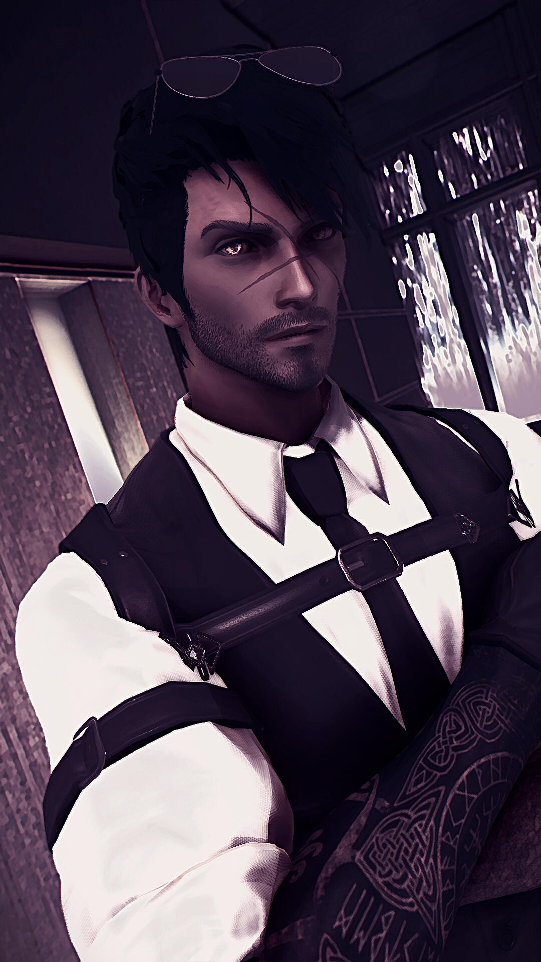 Off-Limits: Bodily Waste, Underrage, Gore, Death, Mutilation, Incest.ABOUT: Unemotional, uncompromising, and intelligent enough to know when someone's pulling a fast one on him; Rhen is the right-hand man to Flame Sergeant Raubahn Aldynn. Blessed by the fires of Ifrit and Ala Mhigo alike, he is the ideal candidate to keep those in check and those around him safe. His appearance at Demon's Reverie is both dark and unusual. Beneath his icy exterior is a man who both scours for vengeance, and hunts his and Ul'dah's own demons with ruthless volition.However, what his work has to do inside the inner workings of the Confluence is even more mysterious than the man's appearance in anything but the night's wreathed shadows. Perhaps to devote his soul to more violence in the name of redemption.Though if it's to his own name or to Ala Mhigo's? Not even Rhalgr could know.BACKSTORY: Rain cascaded over the shutters like a blanket sweeping over the world and washing away the crimes of the night, removing the evidence before dawn could break on the horrors that occurred. Rhen preferred when it was dark and stormy, it was easier to move amongst the shadows in these times in Ul'dah. Those around him running around like rats on a sinking ship. He leaned against the doorframe of Lolorito Nanarito's doorframe that led to the inside world's sanctum. Resting his shoulder against, as he took a long, slow drag of a cigarette. Smoking wasn't really for him, but given the circumstances given—he needed one in a past life, let alone this one.