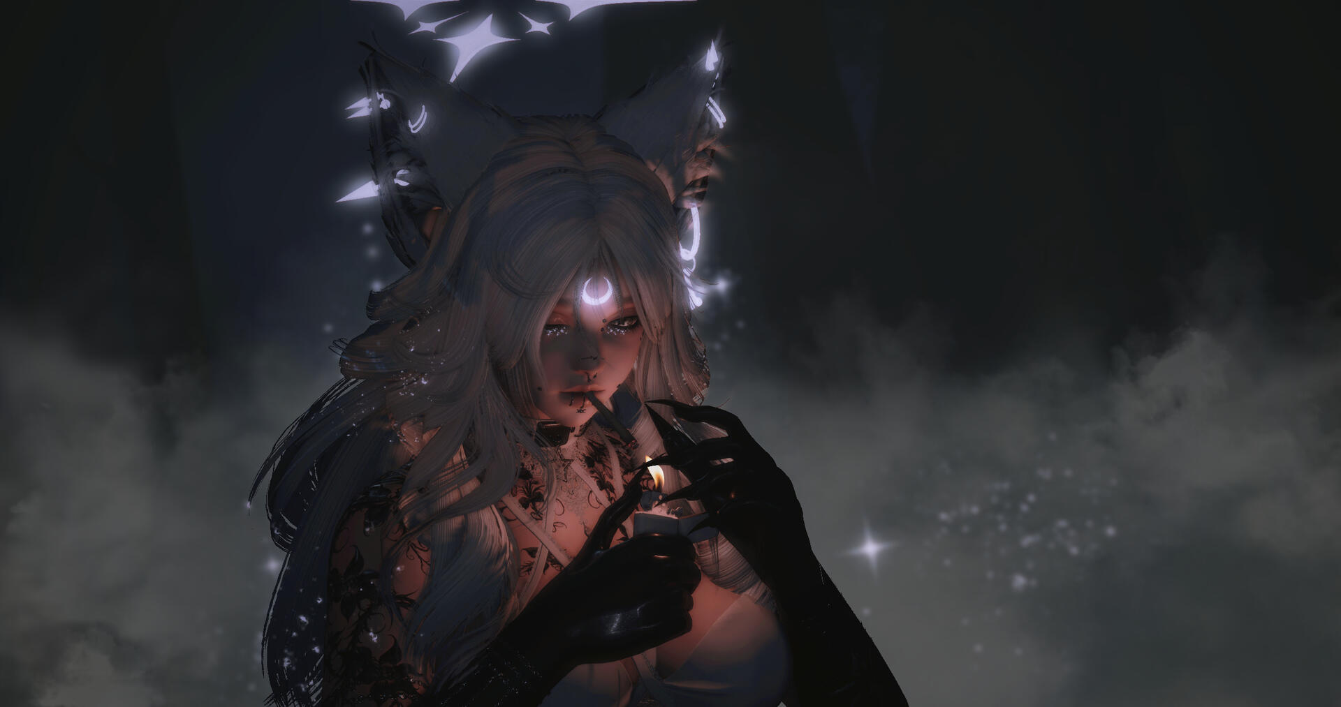 An alluring, mysterious miqo'te shrouded in frost, Indica is stuck toeing the line of life and death. While inviting at first glance, those with a discerning eye will find she keeps everything at arms length. She can often be found lounging about Demons Reverie, smoking and teasing staff and patron alike. She was born with an excessive amount of aether, making her abnormally large and, after death, affecting the space around her. Those with weaker wills may find themselves with loose lips and looser pockets in her relaxing presence.✧ BACKSTORY: