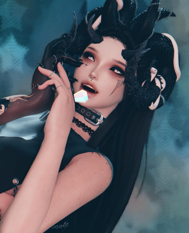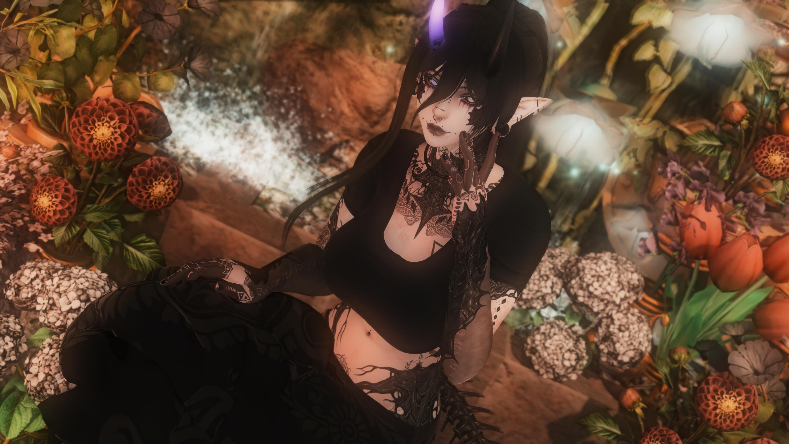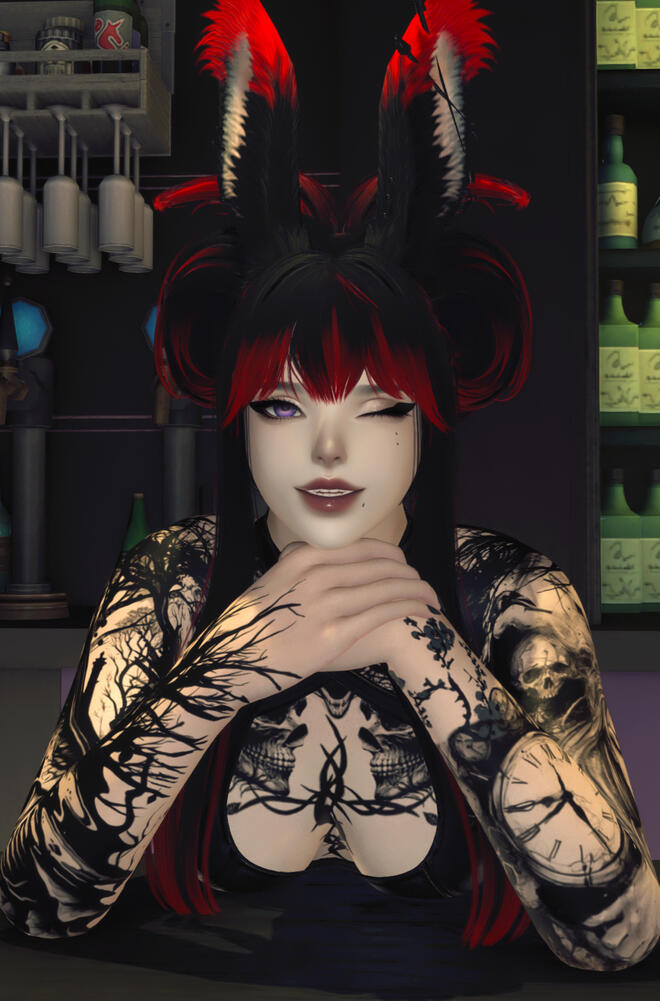 A victim of a botched resurrection with no memory of her mortal life, Indica has been searching for answers for centuries. Hailing from Ishgard and being gifted with a blessing from Halone, she has sought out any clues possible pertaining to what, or who, happened to her. Her search, in recent years, drew her to an abandoned house tucked away in a hidden corner of the Goblet.. a house that, with time, would become the Demons Reverie. Indica has settled for now, making use of the Reverie's intricate web of information to aid in her own search for answers.✧ HOOKS: