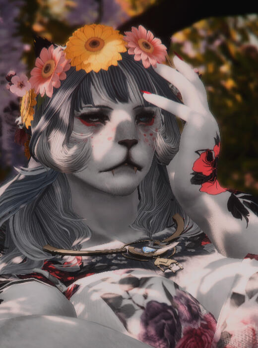 An alluring, mysterious miqo'te shrouded in frost, Indica is stuck toeing the line of life and death. While inviting at first glance, those with a discerning eye will find she keeps everything at arms length. She can often be found lounging about Demons Reverie, smoking and teasing staff and patron alike. She was born with an excessive amount of aether, making her abnormally large and, after death, affecting the space around her. Those with weaker wills may find themselves with loose lips and looser pockets in her relaxing presence.✧ BACKSTORY: